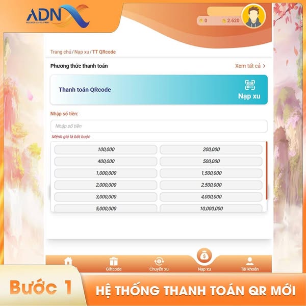 Tỉ lệ nạp: 10,000 VNĐ = 10 xu