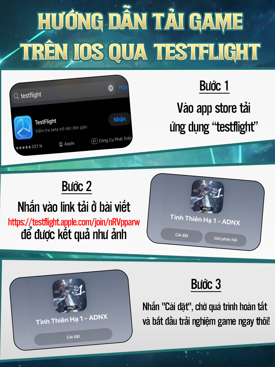 Tình Thiên Hạ 1 ADNX Mobile hiện đã ra mắt trên cả hai hệ điều hành IOS và ANDROID. Tuy nhiên, do đang trong quá trình chờ phê duyệt từ Apple, các bạn tạm thời có thể sử dụng Test Flight để tải game trên hệ điều hành IOS nhé.
