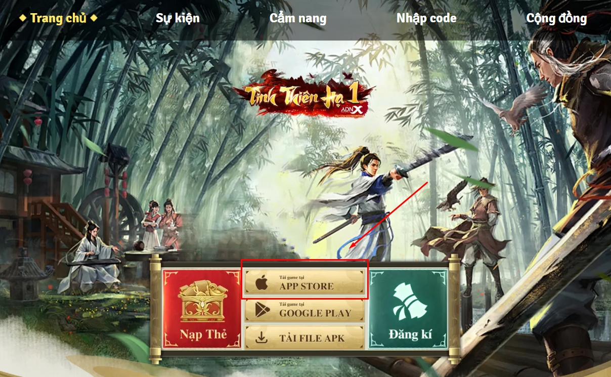 Bước 1: Vào trang chủ của Tình Thiên Hạ 1 ADNX - Chọn Tải AppStore