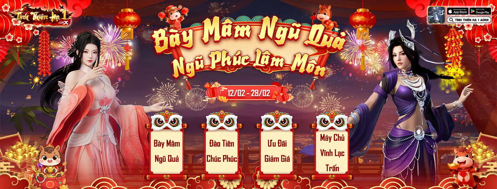 Chuỗi sự kiện Tết đầu tiên của Tình Thiên Hạ 1 đã chính thức khai mở, gợi nhớ những ký ức đẹp nhất trong lòng game thủ võ lâm. Những hoạt động đậm chất truyền thống như Mâm ngũ quả ngày Tết với các món quen thuộc: Sung, Xoài, Bánh Chưng, Bánh Tét,... hứa hẹn mang đến không khí xuân ấm áp và đầy ý nghĩa.
